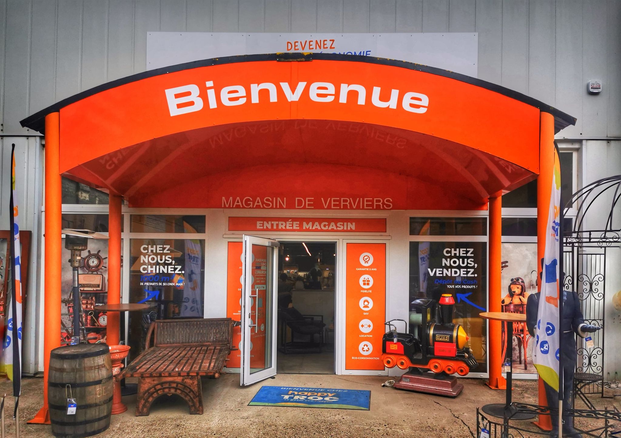 C’est une grande surface de 1300 mètres carrés avec un grand parking gratuit privatif de 25 places, 90 000 visiteurs par an, près de 40 000 articles vendus sur l’année. Une équipe de 5 personnes à votre service, une expérience et un savoir-faire cumulés de 40 ans sur le marché de la seconde main.